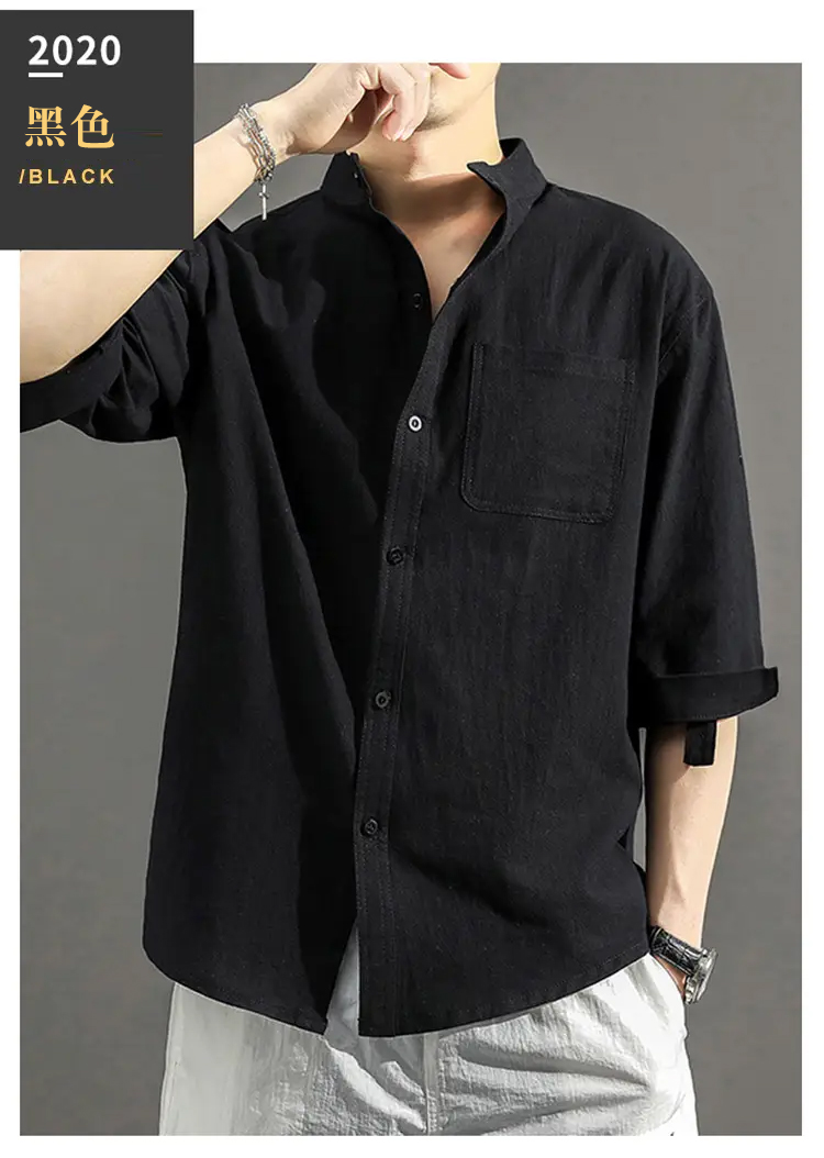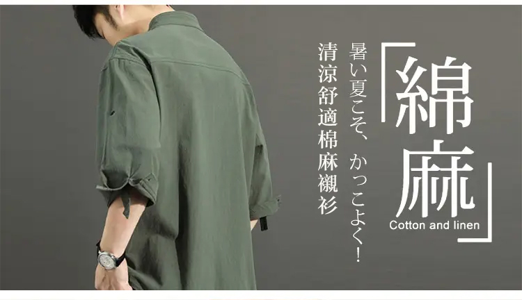 【日本】純手工渲染,棉麻男士襯衫,時尚七分袖,得體大方,收放自如,盡顯男士本色! 【超夯買一送一】